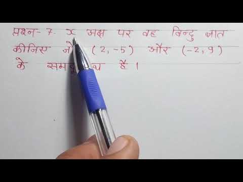 प्रश्न – 7 अक्ष पर वह बिंदु ज्ञात कीजिये जो (2, -5) और (-2, 9) के समदुरस्थ है ।